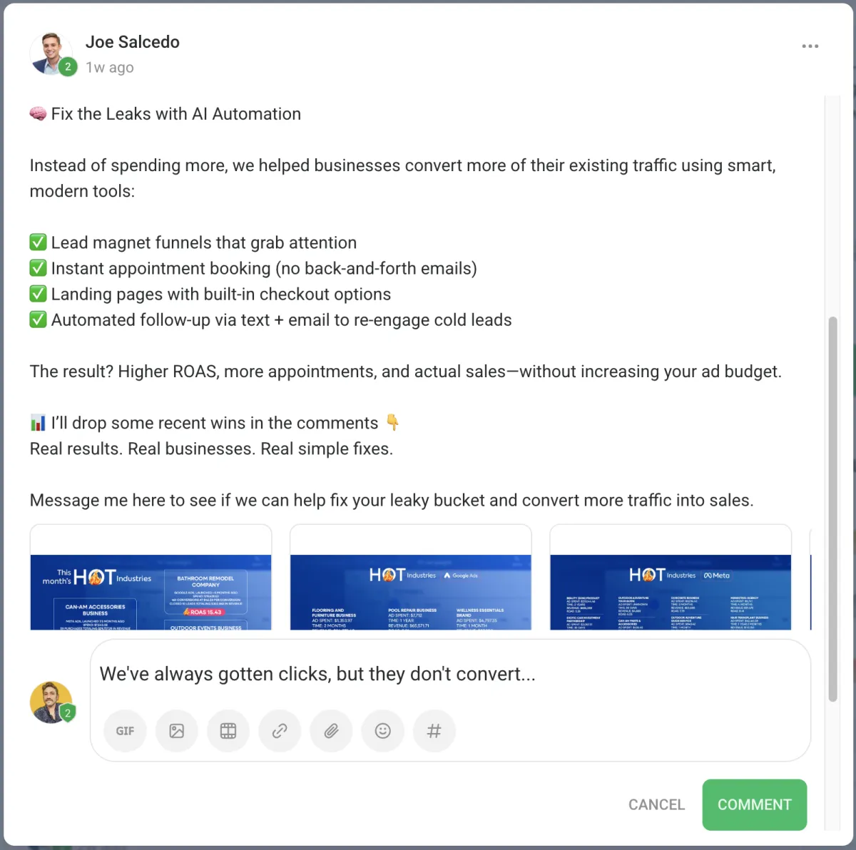 Local Growth Exchange is the no-BS shortcut for local businesses: a tight squad of B2B pros (marketing, commercial insurance/real estate, IT, attorneys, coaches, print & promo, and more) who actually do this stuff for a living. We answer your questions, drop step-by-step playbooks, hand you free resources, and hook you up with member-only offers—so you get leads, reduce risk, and grow profit without guessing. It’s free to join. Check out the posts, ask for help, execute.